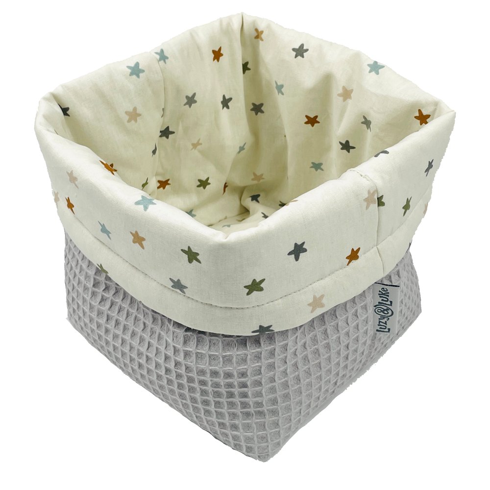 Die Außenseite dieses Stoff-Körbchens ist aus weichem Waffelpique aus 100% Baumwolle und passt perfekt zum gemusterten Innenfutter aus Baumwoll-Popeline. Für mehr Stabilität, haben wir das Utensilio mit Polyesterlies gefüttert.